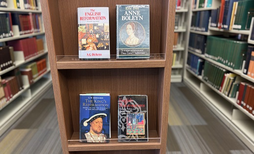 Titles featuring the history, faith, and politics of the sixteenth century English church's break with papal authority, such as books on Henry VIII, Queen Elizabeth, and the beginnings of the English Protestantism. Located on the First floor.