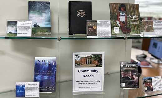 The Community Reads Display is a special patron-to-patron resource for finding your next favorite book or media from the library collection. Students, staff, faculty, and other patrons share titles that are a "must-read/watch." Any patron with a Barbour Library account may participate.