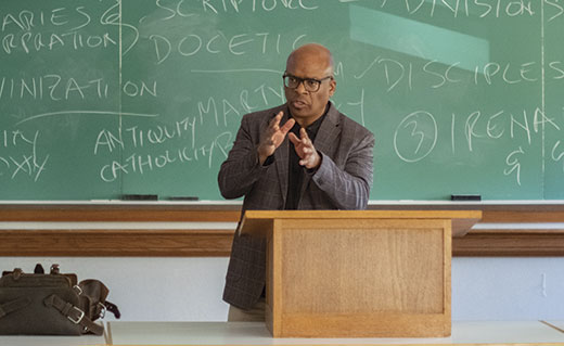 Dr. Danjuma Gibson is both a scholar and a licensed professional counselor with experience in theological education, congregational ministry, and administrative leadership. Before joining PTS, he served as professor of pastoral theology, care, and counseling at Calvin Theological Seminary, where he also designed, launched, and directed a new master of arts program in clinical mental health counseling. Dr. Gibson has received research fellowships and grants from The Association for Theological Schools (ATS Luce Pilot Project), Villanova University (Church Management Research Fellowship), and Wabash Center (Wabash Center Research Fellowship); his research in these areas has particularly progressed study of how black and brown communities respond to racial violence and economic factors such as gentrification and disinvestment. Dr. Gibson is the author of two books, Through the Eyes of Titans: Finding Courage to Redeem the Soul of a Nation (Cascade, 2024) and Frederick Douglass, A Psychobiography: Rethinking Subjectivity in the Western Experiment of Democracy (Springer, 2018), and co-editor of Justice Matters: Spiritual Care and Pastoral Theological Imaginations in Times of the COVID-19 Pandemic (Routledge, 2023). He has authored numerous book chapters and articles and delivered public lectures on a range of topics related to pastoral practices, trauma, African American religions, bi-vocational ministry, mental health, and intersecting subjects. Dr. Gibson has additional experience as a doctor of ministry program co-director and as a professional in the financial sector, notably as vice president of commercial banking at BMO Harris Bank (Chicago, Ill.). He became a licensed minister in the Church of God in Christ, was later ordained in a non-denominational faith community, then served as senior pastor of Zion Faith Center Bible Church (Chicago, Ill.), where he ministered for more than 15 years.